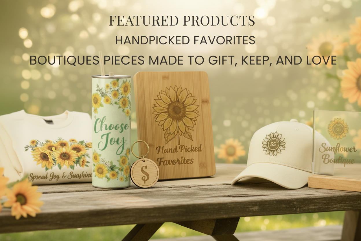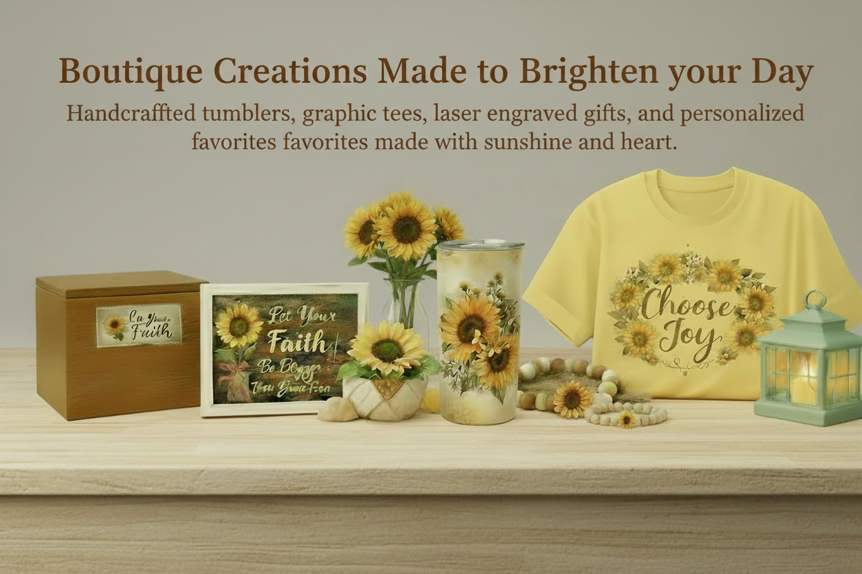 At Show Me Sunflower Creations, every item is created with care, creativity, and a whole lot of heart. From personalized gifts to everyday favorites, our mission is simple — to create meaningful, beautiful pieces that make people feel loved, celebrated, and seen.