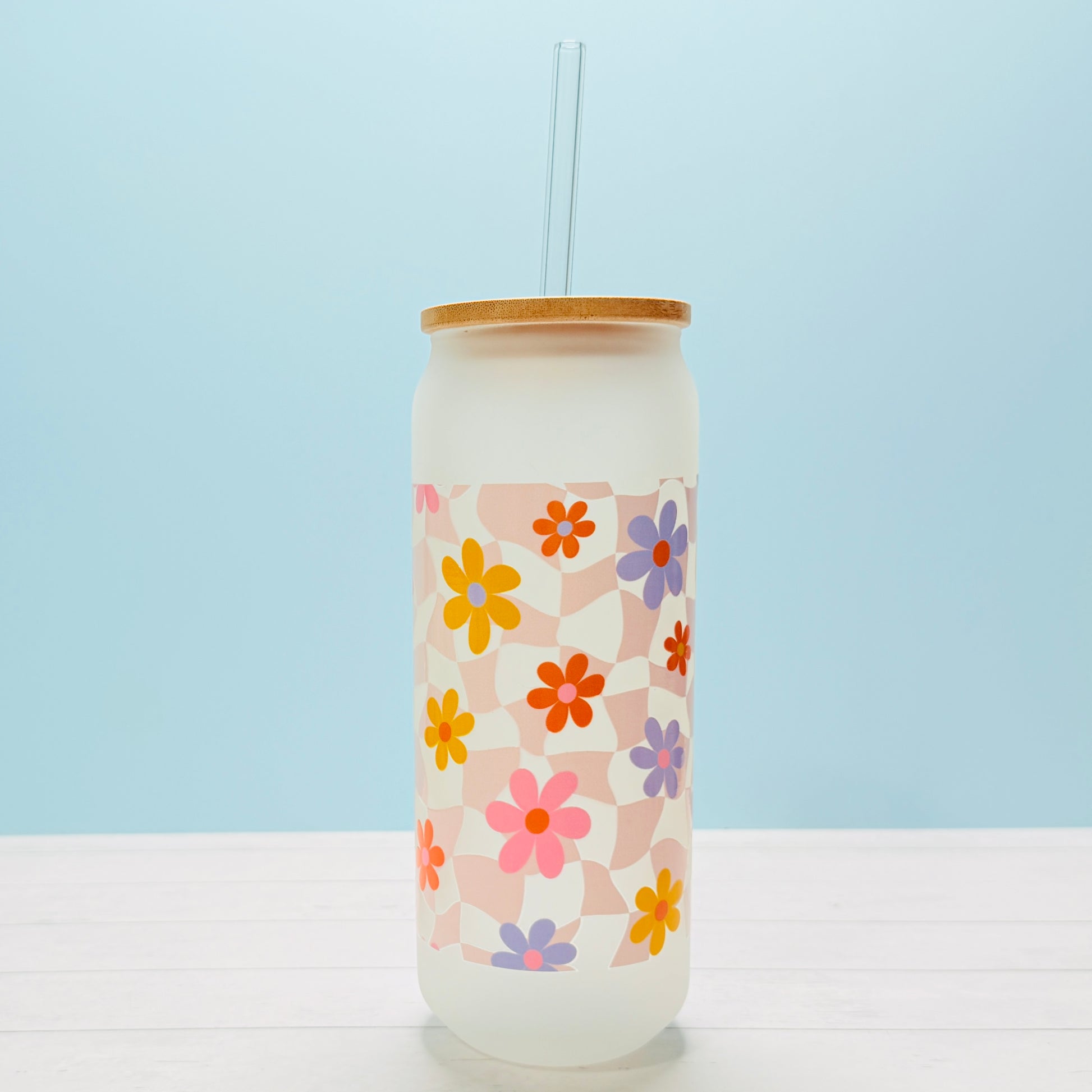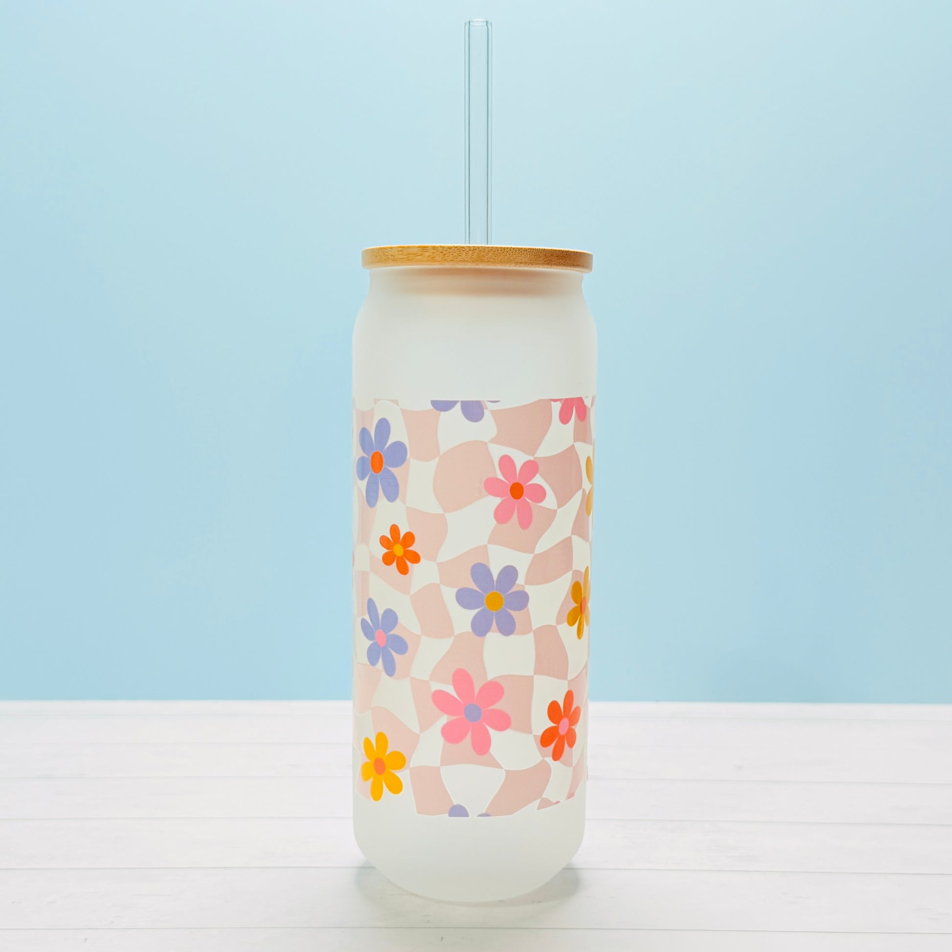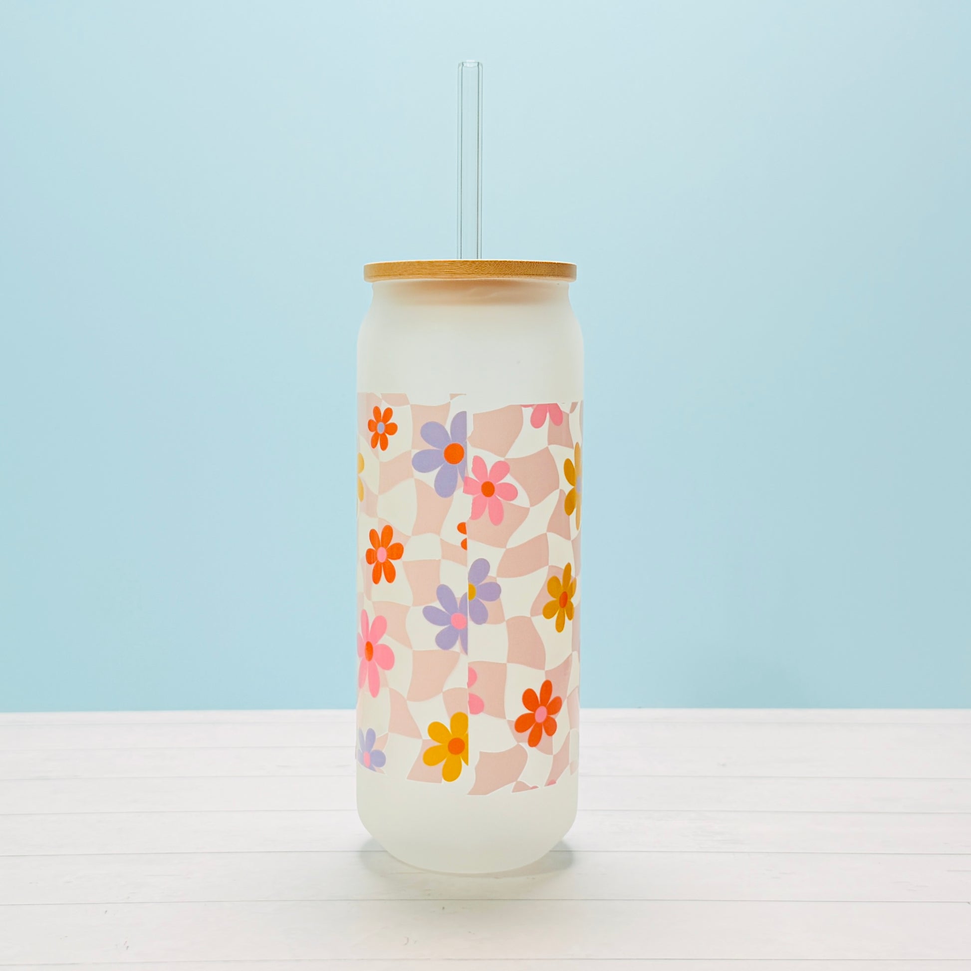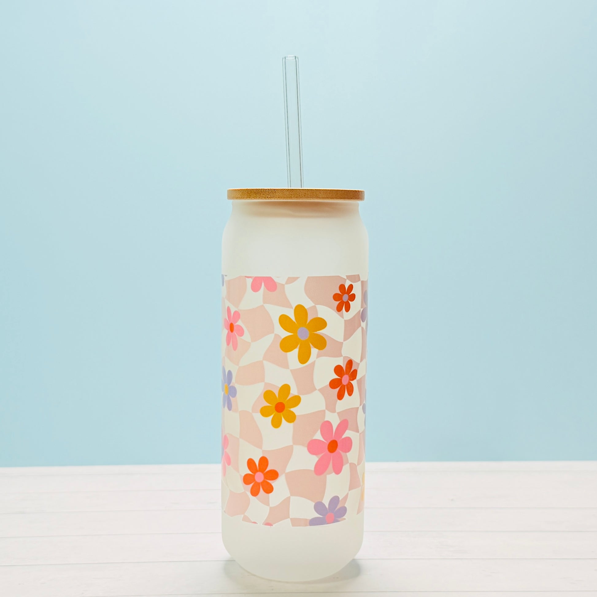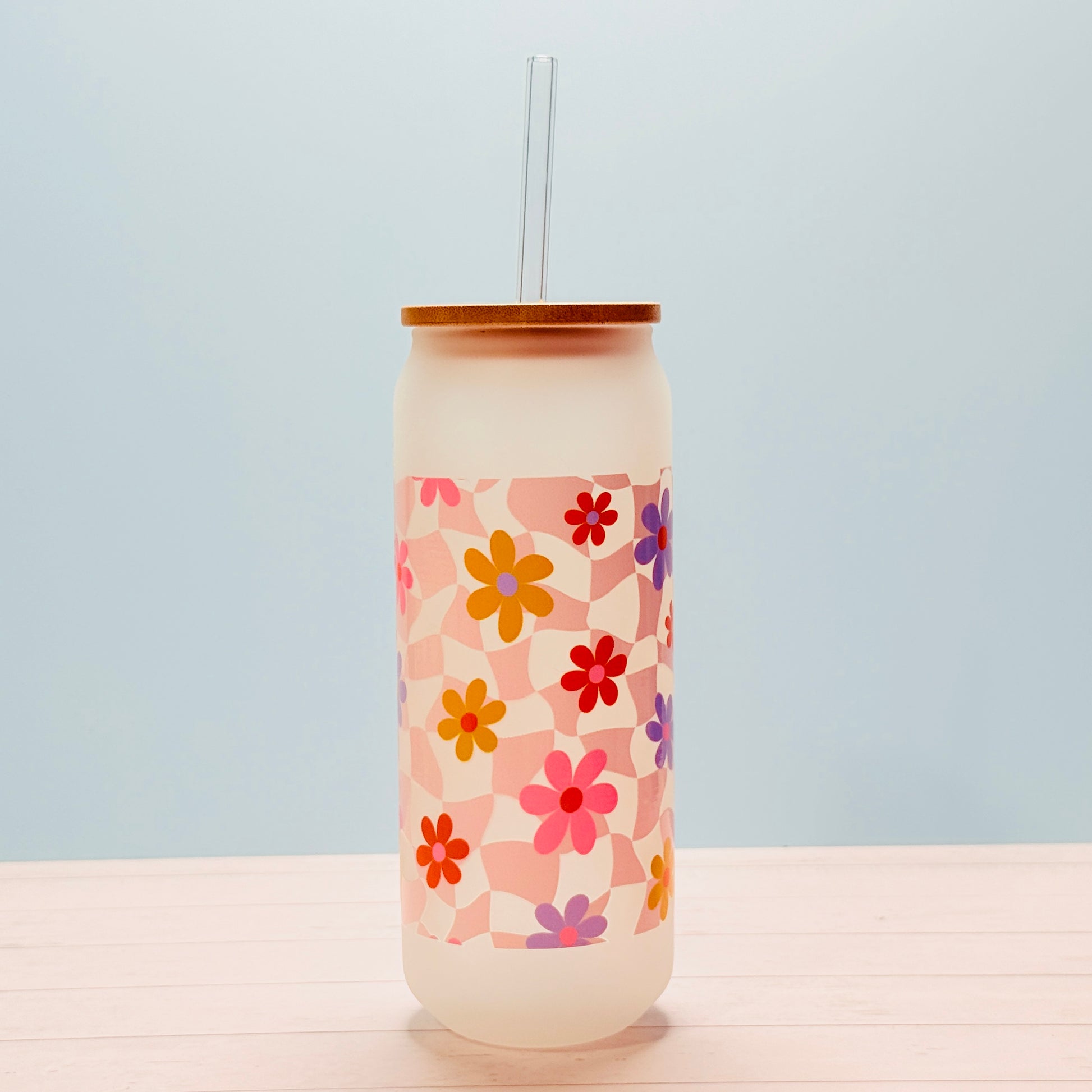 🌸✨20oz Frosted Glass Can Tumbler Wrapped in a Floral UVDTF✨🌸