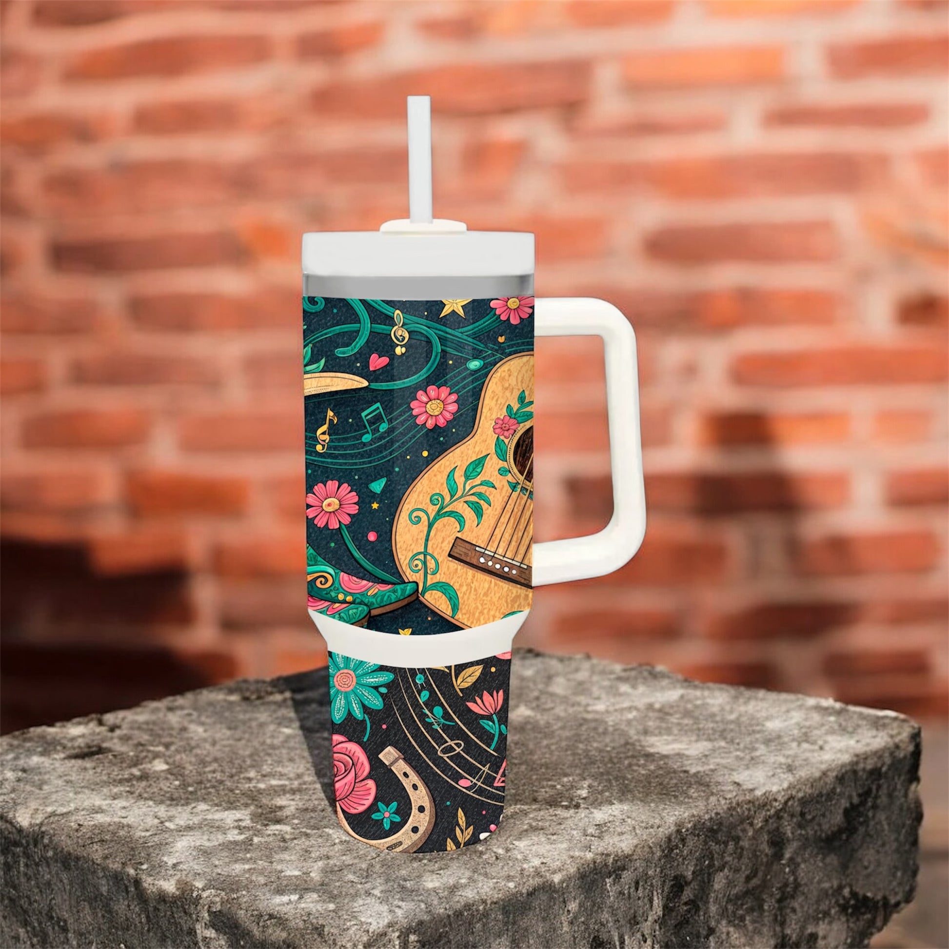 Floral Guitar Music Tumbler with Handle – Where Music Blooms