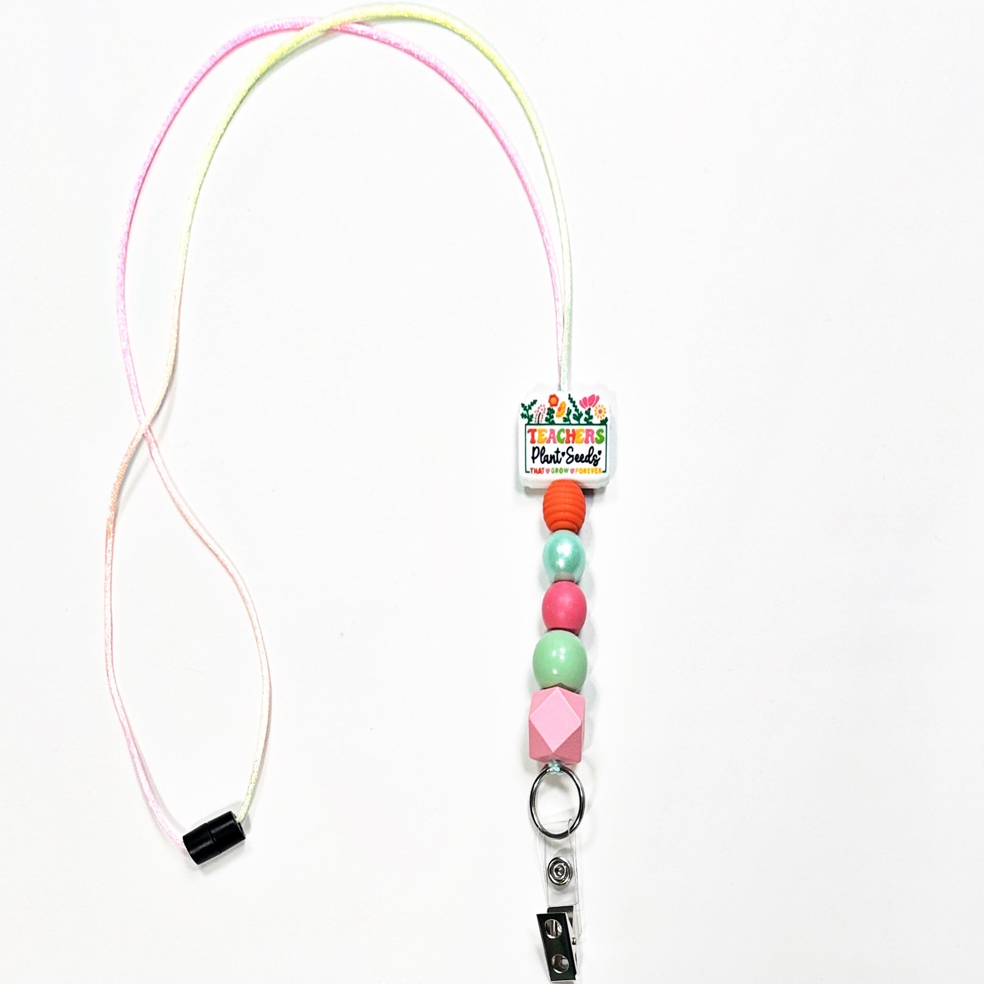 Make your classroom style bloom with our “Teachers Plant Seeds” Beaded Lanyard – the perfect mix of fun, functionality, and appreciation for educators! Featuring pastel silicone beads, a strong breakaway cord, and a badge reel clip for easy ID access, this lanyard is as practical as it is adorable.