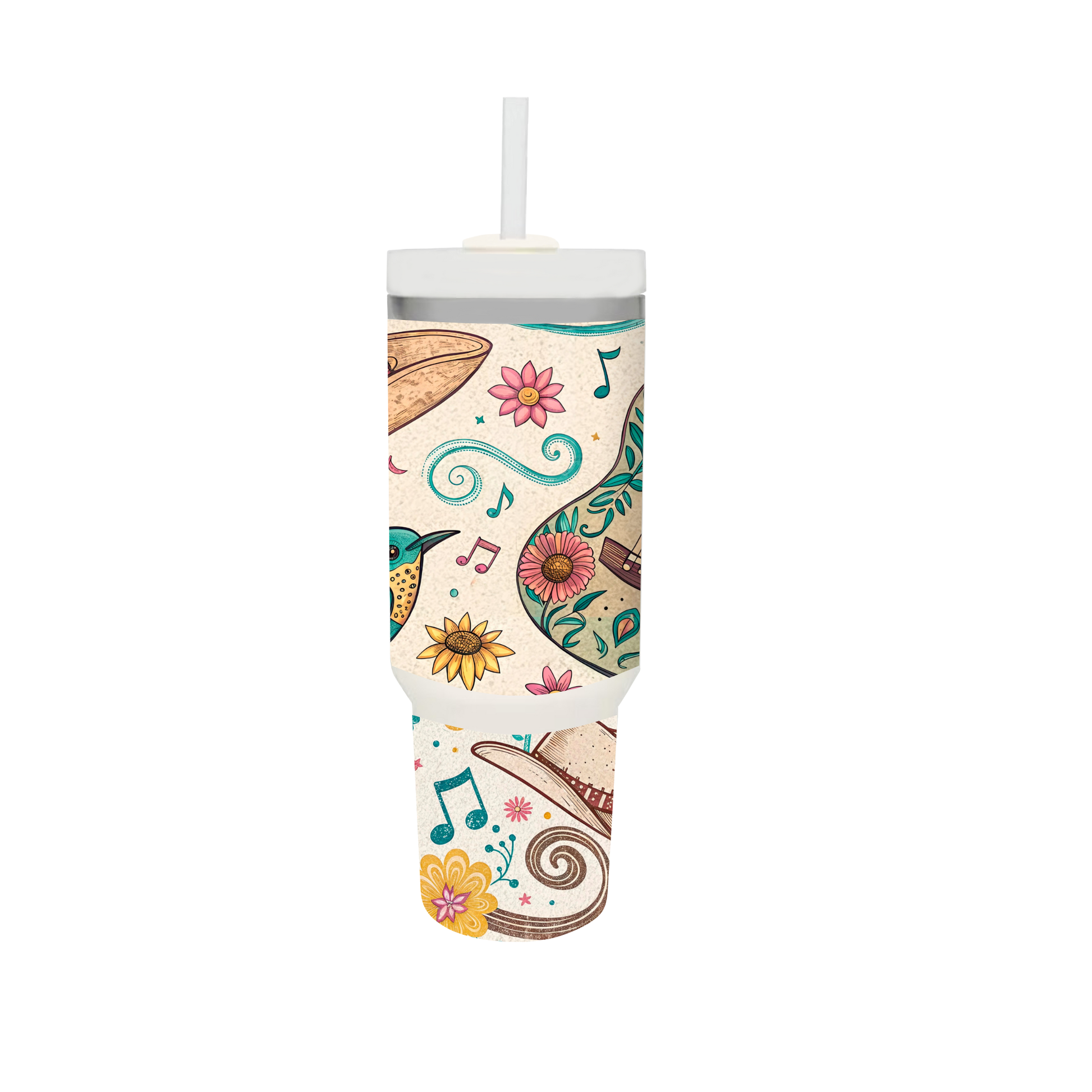 Whimsical Floral & Music Tumbler with Straw – Joy in Every Sip